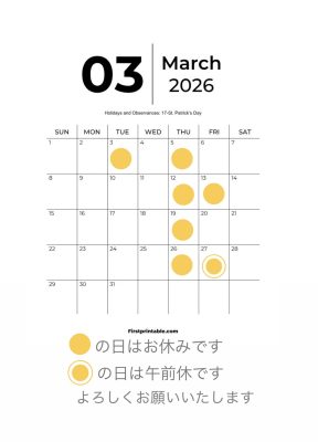 3月のわたくし木村のお休みです。